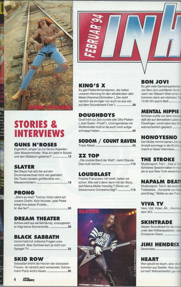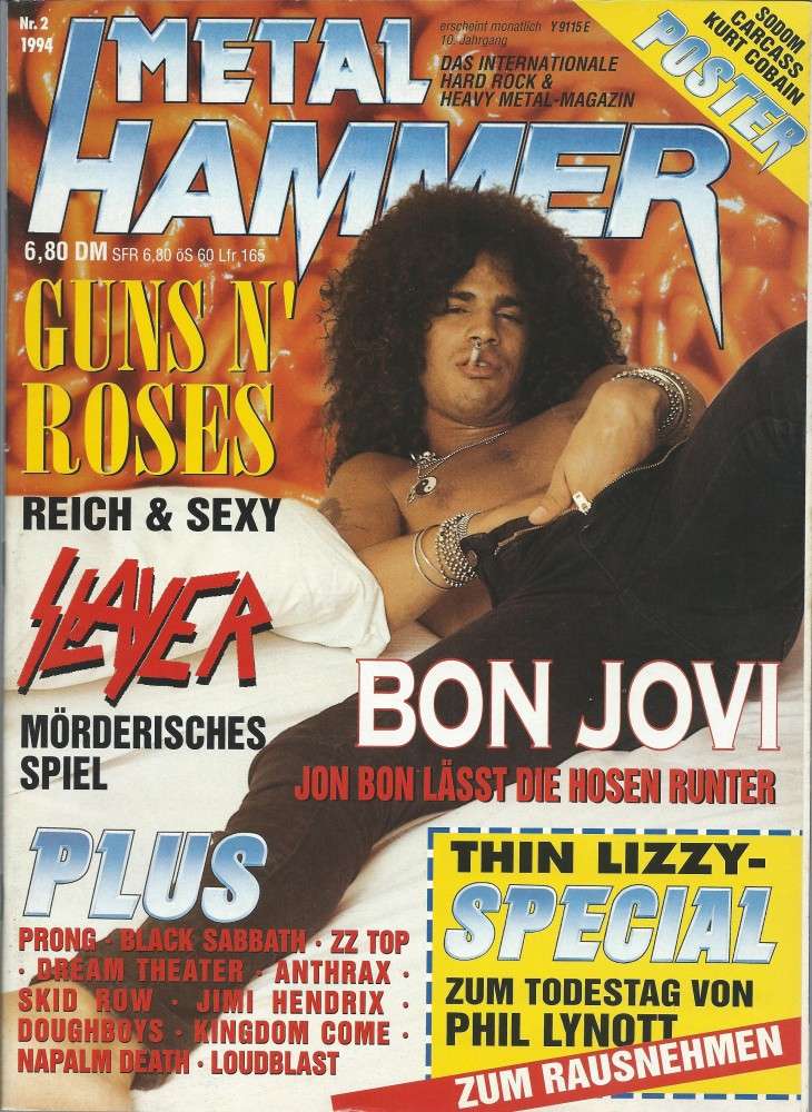 Guns N Roses, Bon Jovi, Slayer, Thin Lizzy Special (8 Seiten), Prong, Anthrax, Jimi Hendrix, King's X, Black Sabbath, Skid Row, 18 Seiten Plattenkritiken und vieles mehr