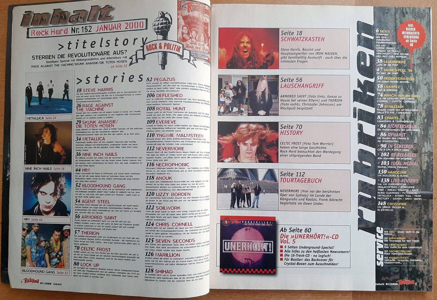 HIM, Bloodhound Gang, Nine Inch Nails, Metallica, Iron Maiden, Agent Steel, Marillion, Celtic Frost, 17 Seiten Plattenkritiken, Buchtipps, Live Reviews und vieles andere mehr