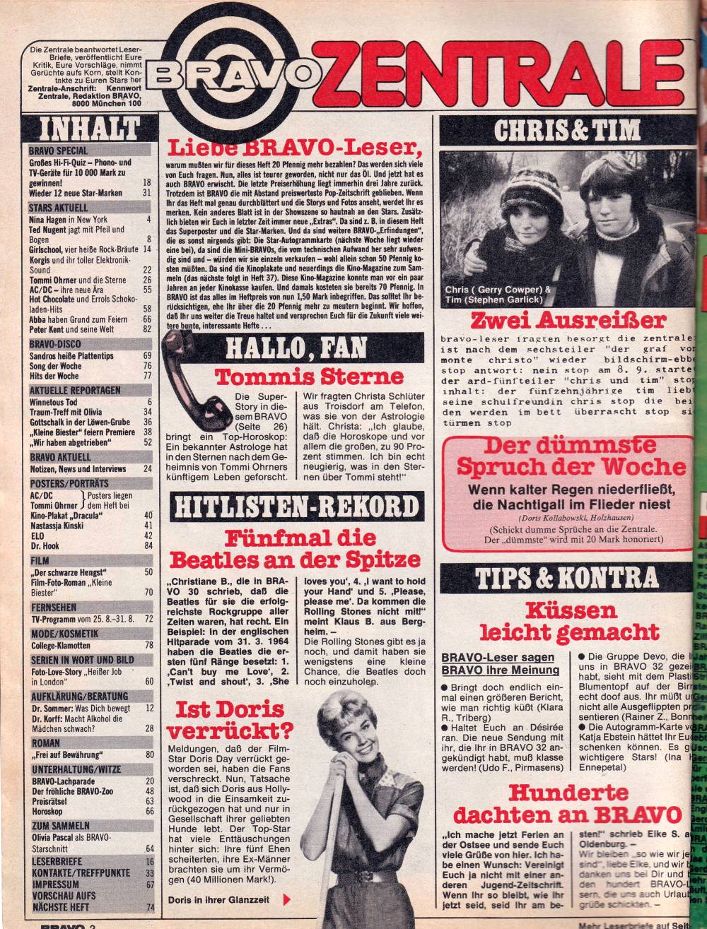 Gerd Müller, Nina Hagen, Ted Nugent, Girlschool, Korgis, Olivia Newton-John, Hot Chocolate, Abba, Peter Kent, Roman, Aufklärung, Foto-Love-Story, Hits der Woche, Plattentipps und vieles andere mehr