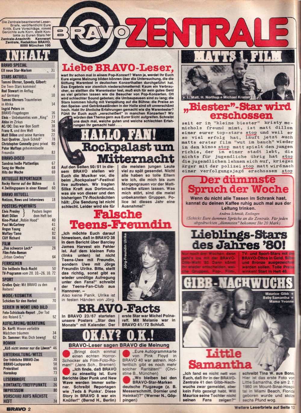 The Teens, Rocky Horror Picture Show, Rod Stewart, Tommi Ohrner, Abba, AC/DC, Franz K, Suzi Quatro, Peter Maffay, Martin Eden, Matt Dillon, Roman, Aufklärung, Foto-Love-Story, Hits der Woche, Plattentipps und vieles andere mehr