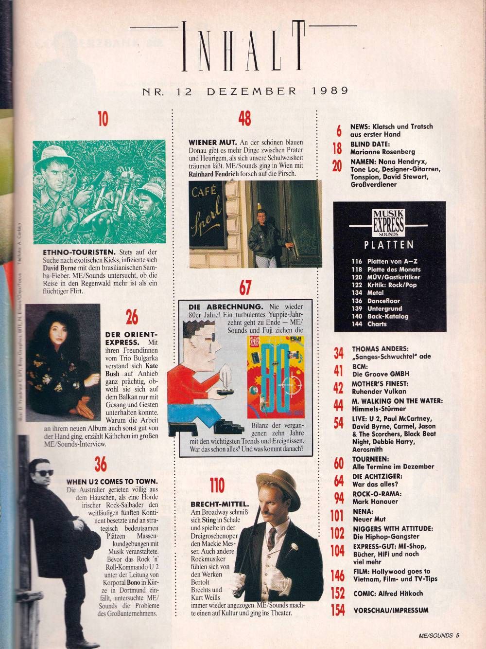 Ethno Music, Thomas Anders, U2, M Walking On The Water, Rainhard Fendrich, Mark Hanauer (Rock-O-Rama), Nena, Sting, Plattentipps auf 21 Seiten, Charts, Live Reviews, Film- und Videotipps und vieles andere mehr