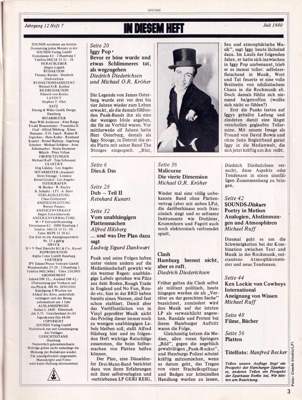Malicorne, The Clash, OMD, Dub Story Teil 2, Ippy Pop Interview, Unabhängige Plattenlabels, Ken Lockie, Plattenbesprechungen auf 11 Seiten, Film- & Buchtipps und vieles andere mehr