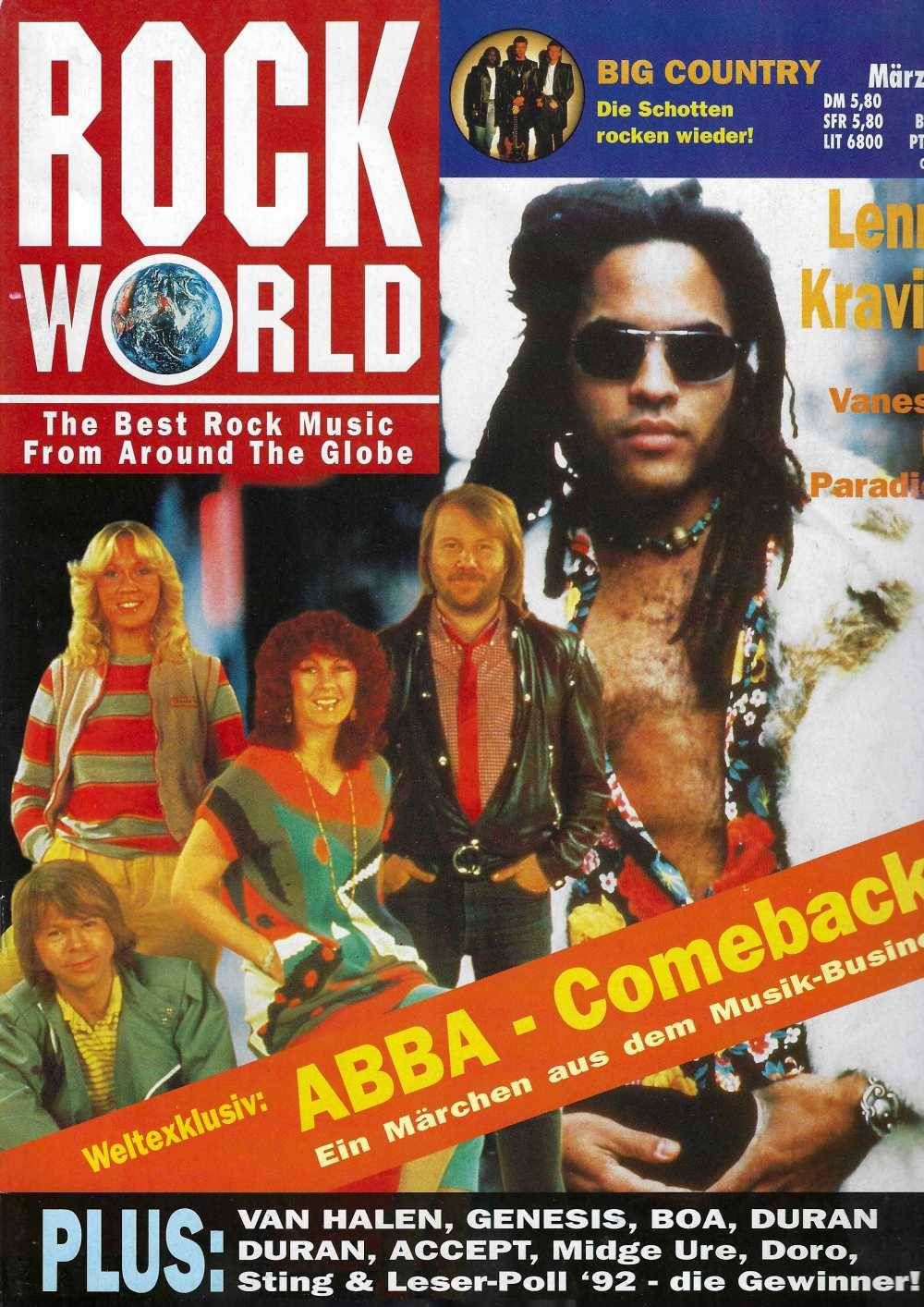 Abba, Lenny Kravitz, Big Country, Phillip Boa, Chuck Prophet, Midge Ure, Duran Duran, Doro, Sting, Van Halen, Manfred Mann, Genesis, record tips on 08 pages, charts, live reviews and much more
