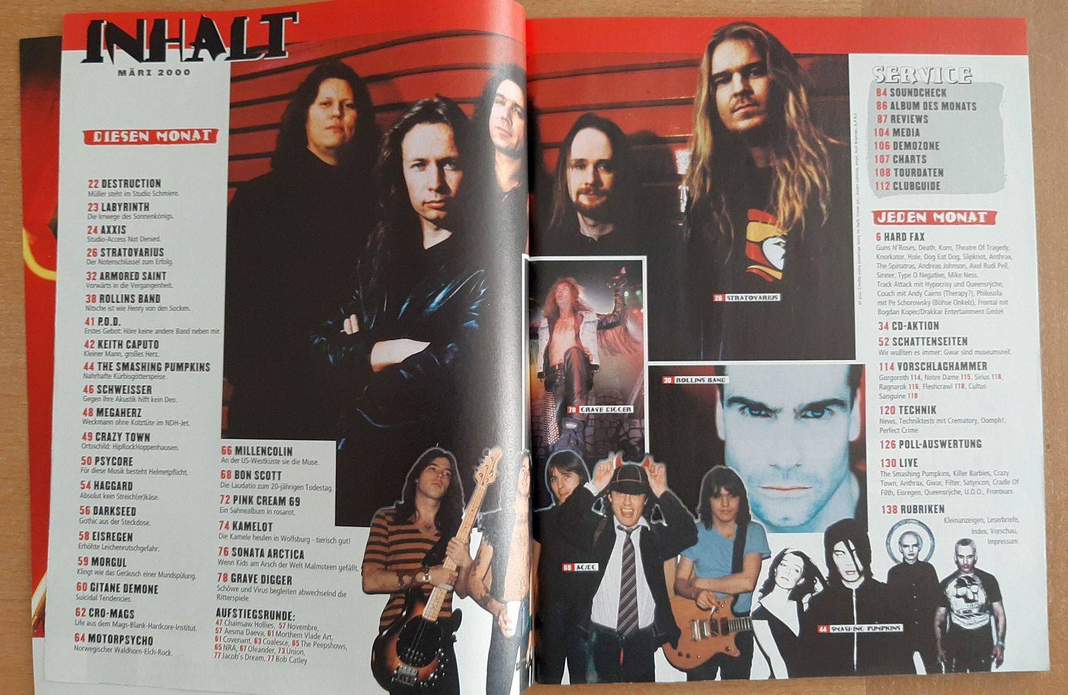 Stratovarius, ACDC, Grave Digger, Rollins Band, Smashing Pumpkins, Axxis, Armored Saint, Schweisser, Cro-Mags, Crazy Town, 20 pages of record reviews, technical news, live reviews and much more