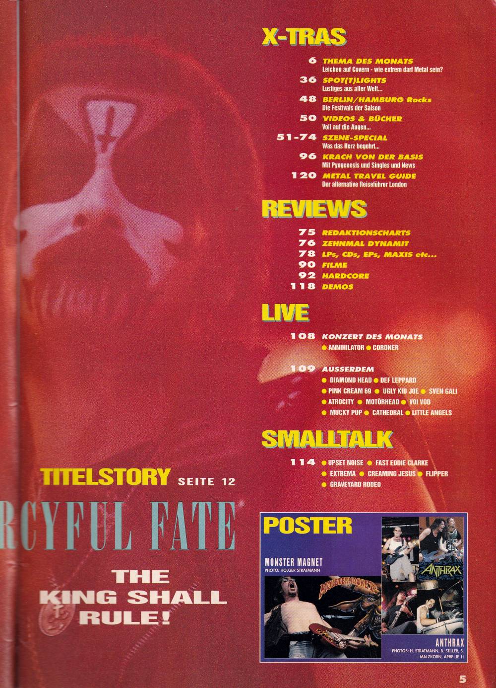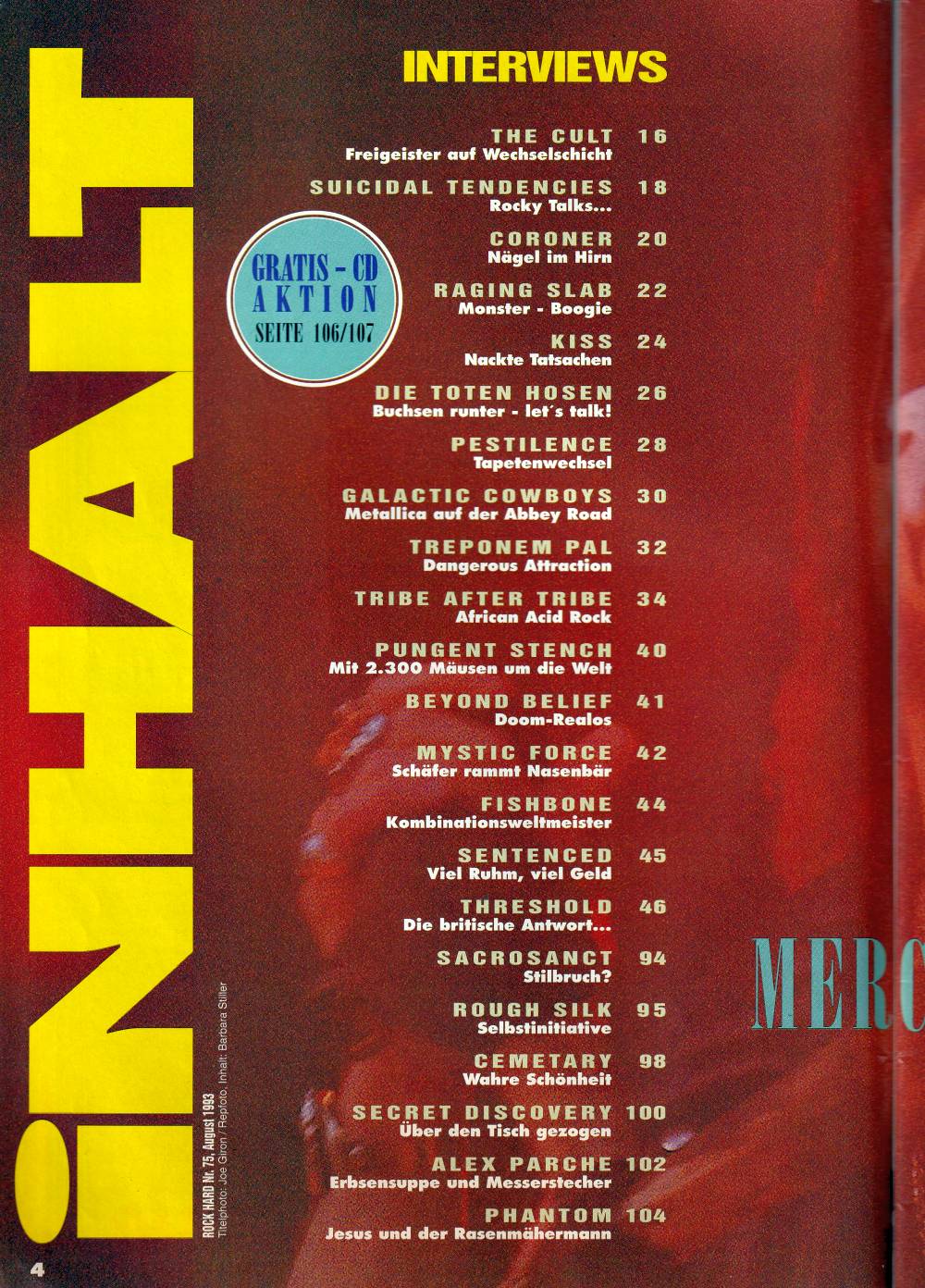 Suicidal Tendencies, The Cult, Kiss, Die toten Hosen, Raging Slab, Coroner, Tribe After Tribe, Fishbone, Pestilence, record tips on 14 pages, charts, live reviews and much more
